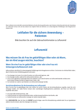 bitte beachten Sie in vorliegender Broschüre die sicherheitsrelevanten Informationen zu Leflunomid medac bei Kinderwunsch und Schwangerschaft.